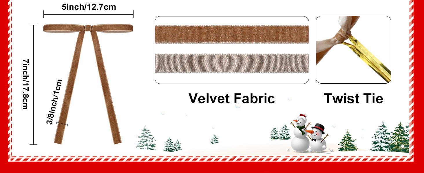 Ready-to-Decorate Set — Includes 24 velvet ribbon bows sized 5″ x 7″ with a 3/8″ width, ideal for decorating your tree, wreaths, garlands, and gifts. Each bow is pre-tied and ready to use out of the box.